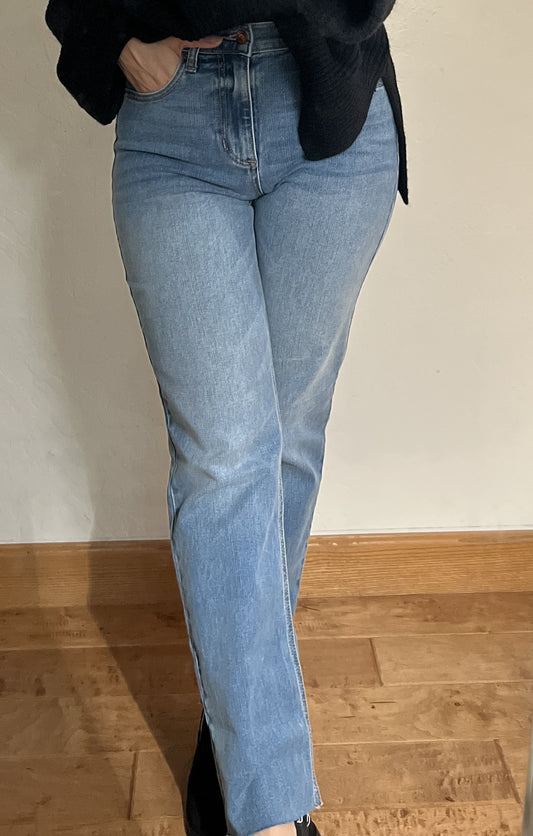 Bianca High Rise Raw Hem Slim Straight Jeans
