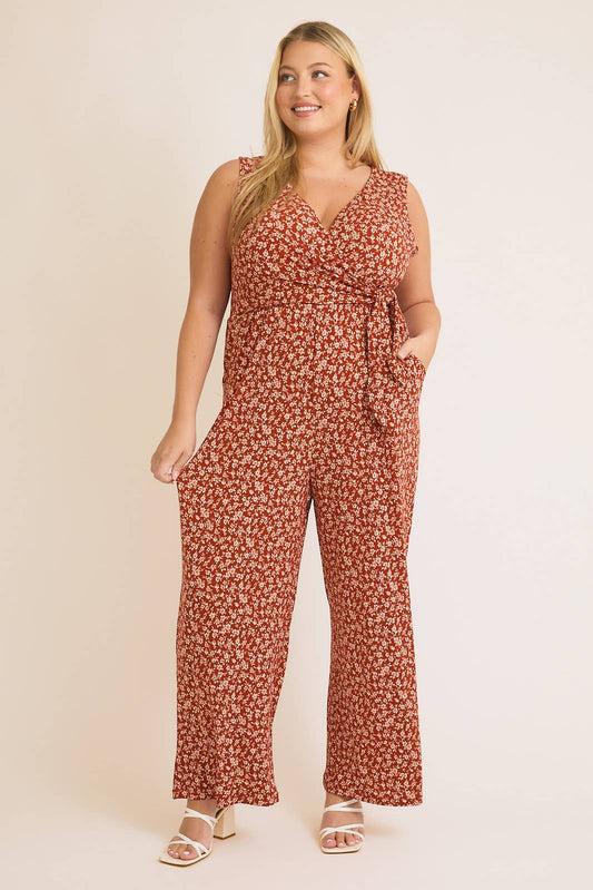 Leona Sleeveless Wrap Tie Jumpsuit - Plus