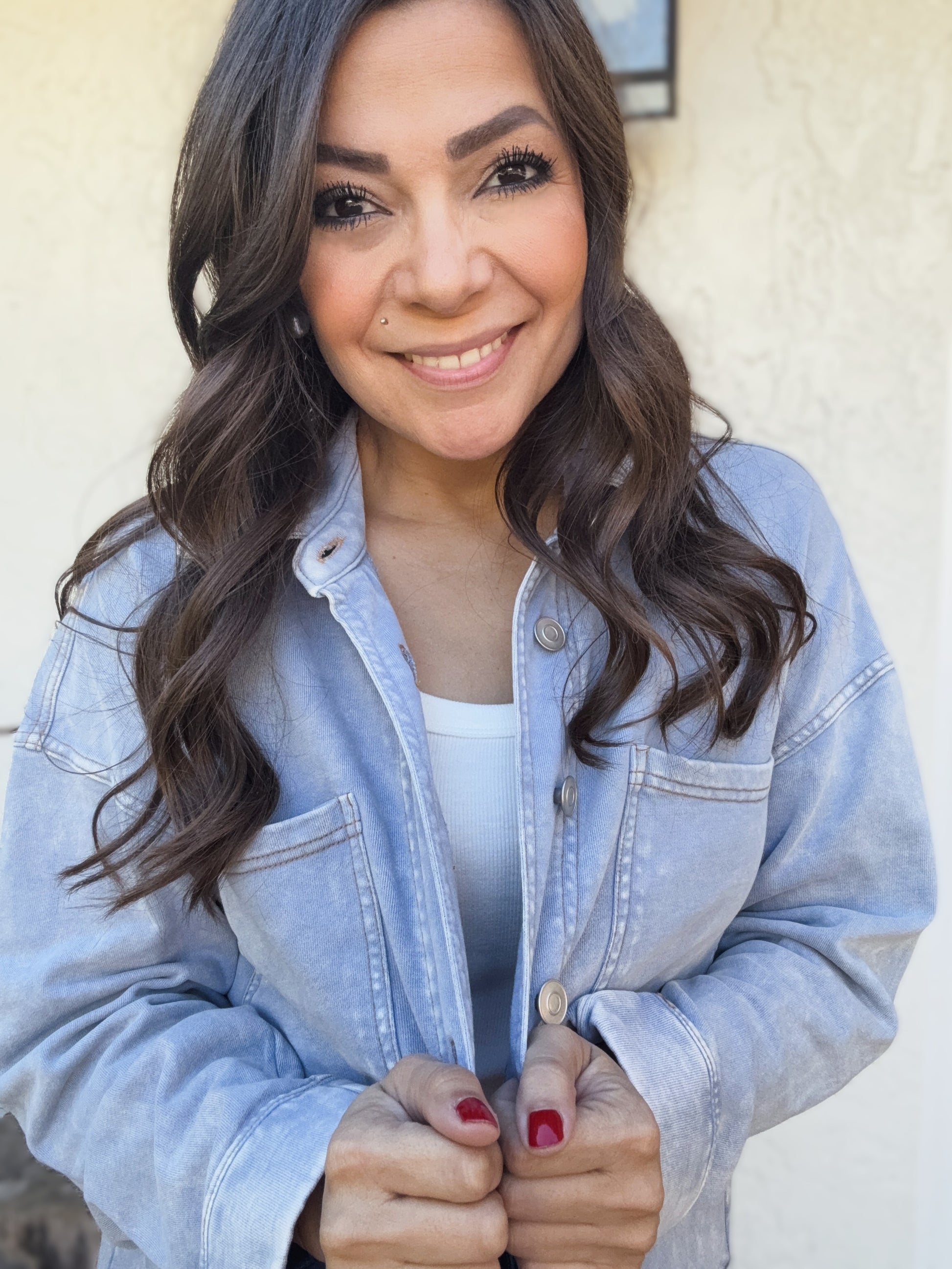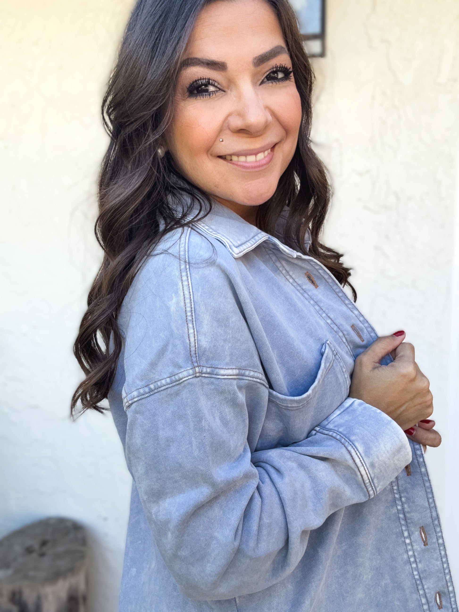 Meet your new wardrobe essential. This versatile shacket combines timeless style with everyday comfort—a collared button-down design that works for any occasion. Long sleeves and drop shoulders create a flattering silhouette, while extended shoulders deliver that coveted relaxed fit. Practical pockets keep your hands free and your essentials close. Whether you're layering over a tee or wearing it solo, this piece adapts to your lifestyle effortlessly.
