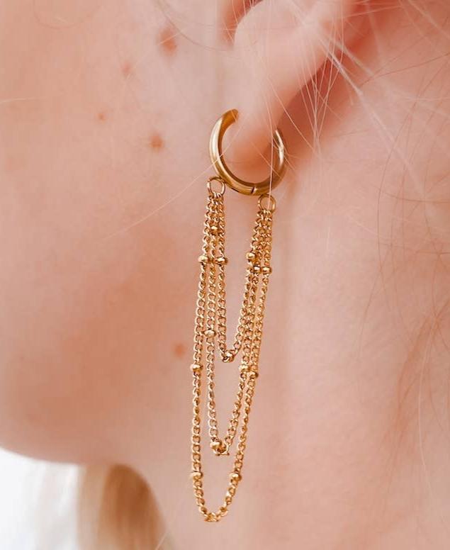 Revamp your style with Darling Chain Drop Hoop Earrings! Waterproof huggies with bold chains that make a statement. Your new go-to accessory!