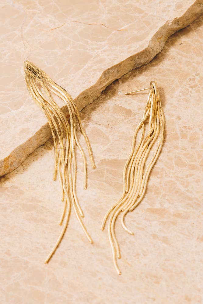 Dress up your look with our Easy On Me Gold Chain Fringe Earrings! Made with 18k gold plating and surgical steel, these earrings make a statement while remaining lightweight and comfortable. Perfect for any occasion, they'll surely add a touch of glam to your outfit.