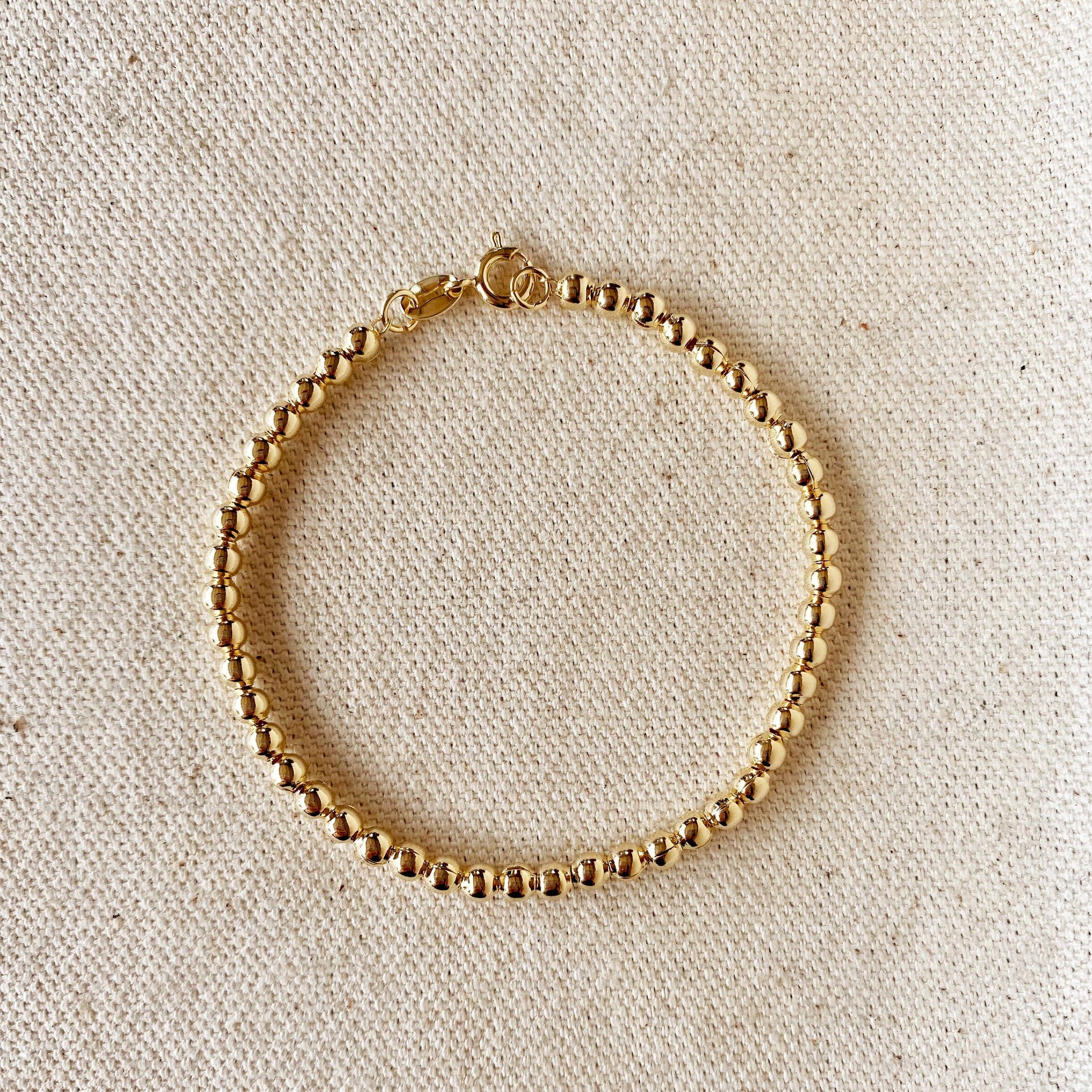 3.5 mm Beaded Bracelet / Metal: 18k Gold filled / Size: 6 inches